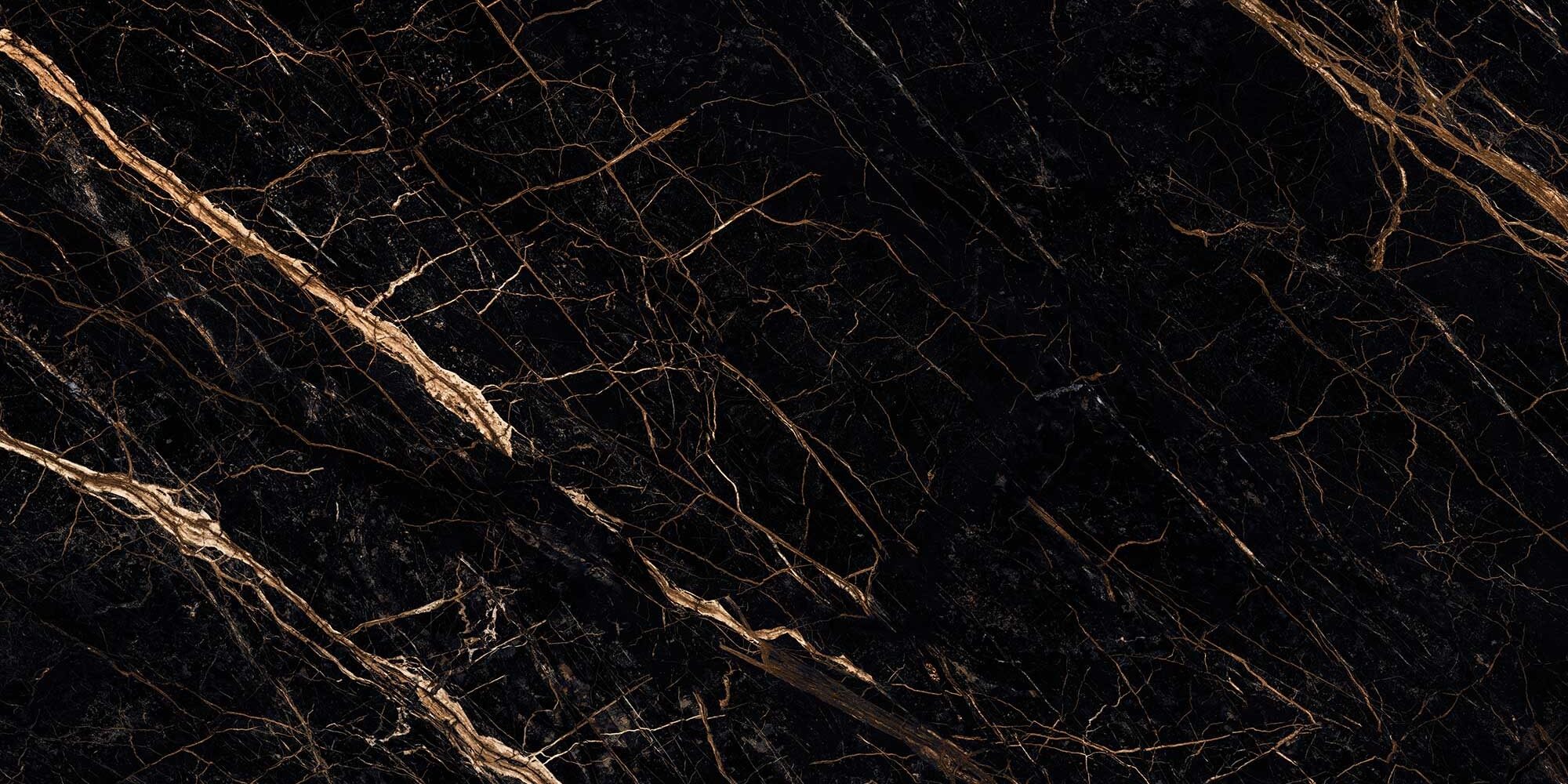 Magma Black es una piedra sinterizada de alto impacto visual que destaca por su fondo negro profundo e intenso, atravesado por vetas irregulares en tonos dorados y cobrizos que evocan la fuerza y elegancia de la naturaleza en estado puro. Su diseño sofisticado crea un efecto de movimiento y profundidad, ideal para espacios que buscan un estilo moderno, lujoso y con personalidad.