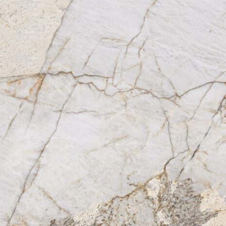 Patagonia Bianco es una piedra sinterizada que destaca por su estética elegante y sofisticada, inspirada en la belleza natural de formaciones geológicas únicas. Su superficie presenta una base clara en tonos blanco y gris suave, atravesada por vetas orgánicas en matices dorados y beige que crean un efecto visual dinámico y exclusivo.