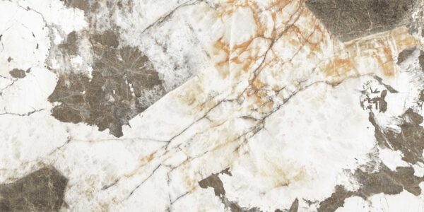 Patagonia Stone es una piedra sinterizada de alto impacto visual que destaca por su diseño inspirado en la naturaleza más exclusiva. Su base en tonos blancos y marfil se combina con vetas orgánicas en matices dorados, beige y grises, creando un efecto similar a una obra de arte mineral.